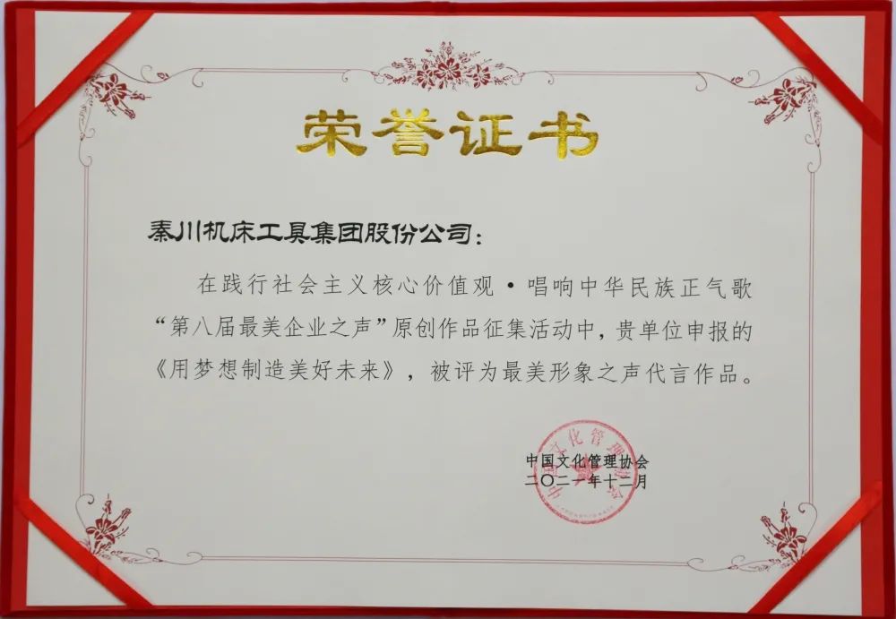秦川集團榮獲“新時代企業(yè)黨建實踐創(chuàng)新·典范單位”榮譽稱號,選送的原創(chuàng)短視頻作品《用夢想制造美好未來》獲“最美形象之聲代言作品”。